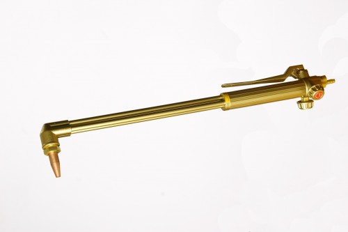 Possui sistema tipo injetor, tubos de latão, cabeça 90º, opera com bicos de corte nº 1502 (acetileno) e 1503 (GLP).